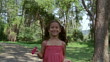 Medium shot zoom in girl jumping rope in woods/ Clinton, New Jersey - HD Stock-Video