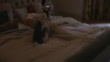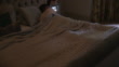 Man lying in bed, being woken up by his Wire Fox Terrier in the morning.
