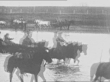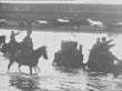Montage Imperial Russian Army soldiers ride horses, pull carts through deep water during World War I / car approaches, stops; Czar Nicholas II decars, salutes and shakes hands with saluting officer / from Greatest Headlines of the Century series / Note: [exact dates not known]