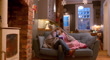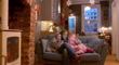 A static video clip of two young girls with their mother, sitting comfortably with a blanket over their heads on a sofa in the living room of their home in South Shields, North East England. They are all smiling, looking at a digital tablet which the mother is holding. In the background the kitchen is in partial view, and it is dusk outside.Images similar to this scenario available.