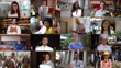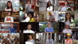 Multiple video montage of diverse people and professions facing camera smiling - Various occupations concepts