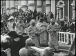 Czar Nicholas II walks in a procession with his family and Russian Orthodox Church clergy members.