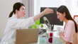 asian woman is discussing for aesthetic medicine treatment with female doctor - physician using pen to point patient head then explaining her scalp and head skin problem