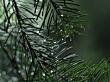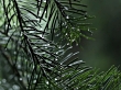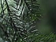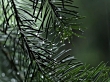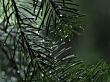 NTSC Grüne Kiefernzweige, die sich im Regen bewegen. Videohintergrund.