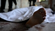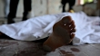 Group of people at the crime scene, detective and forensics next to a dead body.