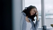 Schwangere Frau, die Kopfschmerzen zu Hause - HD Stock-Video