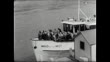 President Lyndon B Johnson with Lady Bird and Lynda accompany Premier Alexei Kosygin and daughter Ludmilla on sightseeing tour / all on boat at Niagara Falls / WS of falls / wave for cameras.