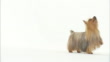 A silky terrier stands in a white room, wags its tail and looks up - HD Stock-Video