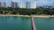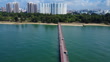 Singapore, November 1, 2025: Aerial view of Bedok Jetty in East Coast Park on the Singapore Straits. East Coast Park is a public park on reclaimed land with no admission charge.