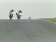 LEICESTERSHIRE, ENGLAND - AUGUST 6: (AUDIO OMITTED) (COMPILATION) Sito Pons leads the race on his Campsa Honsa NSR250 ahead of Jacques Cornu on his Lucky Strike Honda NSR250 during the British Motorcycle Grand Prix at Donington Park Circuit on August 6, 1989 in Leicestershire, England. (Footage by Duke Video/Getty Images)