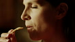 Slow motion close up panning shot of woman biting into pita chip / Cedar Hills, Utah, United States - HD Stock-Video