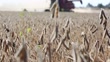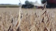 US: Combine Harvester Operating in Field with Soy Bean Close Ups