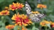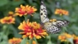 St. Paul, Minnesota, Butterfly garden. Rice Paper butterfly, Idea leuconoe feeding on Zinnia flower. It is native to the forested regions of Southeast Asia. - 4K Stock-Video