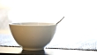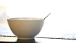 Dampf steigt aus dieser heißen Schüssel Suppe auf.