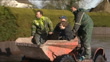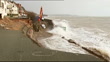 Storms in South West England continue; ENGLAND: Devon: Dawlish:EXTHeavy sea waves breaking over damaged (but still intact) section of coastal railway line Waves breaking against sea front promenade wallDamaged section of coastal railway track (seen from station platform)Somerset:General view of flooded fieldsHigh angle shot of flooded fields and country roadDevon: Dawlish:Railway repair workers at site of collapsed section of coastal railway track as waves crash over siteCornwall: Kingsand:DAWNWorkers attempting to repair collapsed base of damaged seafront clock tower (destroyed by storms) - waves breaking onto rocks and beach alongsideDAWN endsDevon: Westward Ho!:Collapsed seaction of seafront cliff near large seafront hotel / restaurantRob Braddick (Restaurant Owner) interview SOTChesil Beach:British soldiers (British troops) unloading mechanical diggers from lorries on beach (preparing to rebuild coastal defences)Row of mechanical diggers (British Army mechanical diggers) lined up on beachReporter to cameraSomerset: Moorland:Woman sits in RNLI rescue dinghy as rescue workers pull it along flooded suburban streetPeople sit on small tractor as along flooded suburban streetBurrowbridge:Superintendent Ian Wylie (Avon and Somerset Police) interview SOT
