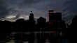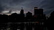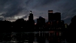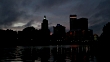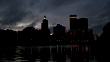 Providence, Rhode Island - July 14, 2016: Low level storm clouds fly over the Providence river as a glowing orange sunset tries to bake it's way through.