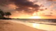 A beautiful sunset at the beach in Makena called Maluaka. Waves roll up the beach in Hawaii.