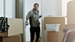 Überrascht Mann mit ihrer neuen Wohnung