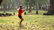 Junger Mann zeigt Thai-Box-Können.