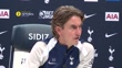 ENFIELD, ENGLAND - AUGUST 29: Thomas Frank, Tottenham Hotspur manager, speaks about Djed Spence's signing ahead of their English Premier League match against Bournemouth during a press conference at Tottenham Hotspur Training Centre on August 29, 2025 in Enfield, England. (Footage by Niche Sport Media via Getty Images)