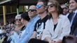 SYDNEY, AUSTRALIA - APRIL 19: Tommy Raudonikis' wife Trish Brown along with family members watch the big screen tributes during the Tommy Raudonikis Memorial Service at the Sydney Cricket Ground on April 19, 2021 in Sydney, Australia. Raudonikis passed away on the 7th April after a long battle with Cancer. Raudonikis is remembered for his rugby league career with the Western Suburbs Magpies and Newtown Jets in the NSWRL, and for New South Wales in State of Origin and the Australian national team. (Footage by Mark Kolbe/Getty Images)