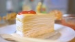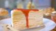 Vanille-Krap-Kuh-Topping mit Erdbeersoße, Dessert Tasy Kuchen. - 4K Stock-Video