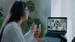 Video conference, woman and talking in online meeting for remote work, webinar or collaboration with headphones. Business, person and internet for team networking, workshop and virtual call in office