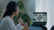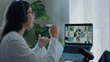 Videokonferenz, Frau und Gespräch am Laptop im Online-Meeting für Remote Work, Webinar oder Zusammenarbeit mit Kopfhörern. Business, Person und Internet für Team-Networking, Workshop und virtuellen Call - 4K Stock-Video