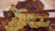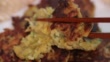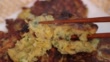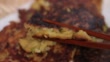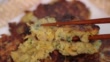 View of chopsticks dividing Buchimgae(Korean style vegetable pancake) into halves - HD Stock-Video