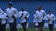 MANCHESTER, ENGLAND - NOVEMBER 26: (AUDIO OMITTED) Vincent Kompany, Jesus Navas, Pablo Zabaleta and the rest of the team warm up during training session ahead a Premier League match in Carrington Training Ground on November 26, 2013 in Manchester, England. (Footage by Niche Sport Media via Getty Images)