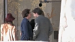 We spotted the French actor Francois Cluzet and French Actress and Director Liza Azuelos on set of "Une rencontre" in Paris. The scene shows the actros kissing and walking