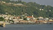 Wide panning shot of boat in ocean near waterfront / St. Georges, Greneda - HD Stock-Video