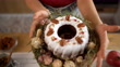 Frau mit geschmückter Weihnachtstorte zeigt es in die Kamera - 4K Stock-Video