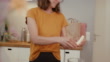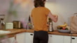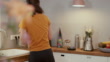 Woman preparing food in her kitchen and working from home in Germany by herself. Part of a series.