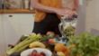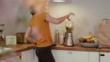 Woman putting banana into blender, making smoothie at home - 4K Stock-Video