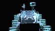 Roboter-Mars-Rover mit transparenten Röntgenbildern. 360-Grad-Ansicht der Querschnitte des Mars Explorer Vehicle.