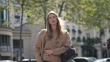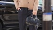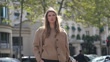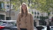 PARIS, FRANCE - OCTOBER 3: (SLOW-MO) Zita D'Hauteville wears a pale / pastel brown / beige Miu Miu wool cardigan, a pullover, black pants, a black leather bag, brown leather shoes , outside Miu Miu, during the Womenswear Spring/Summer 2024 as part of Paris Fashion Week on October 03, 2023 in Paris, France. (Footage by Edward Berthelot/Getty Images)